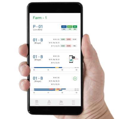 Krushang-500: cloud-enabled irrigation controller, mobile app scheduling/monitoring, improves yield, profitability, reduces overhead.